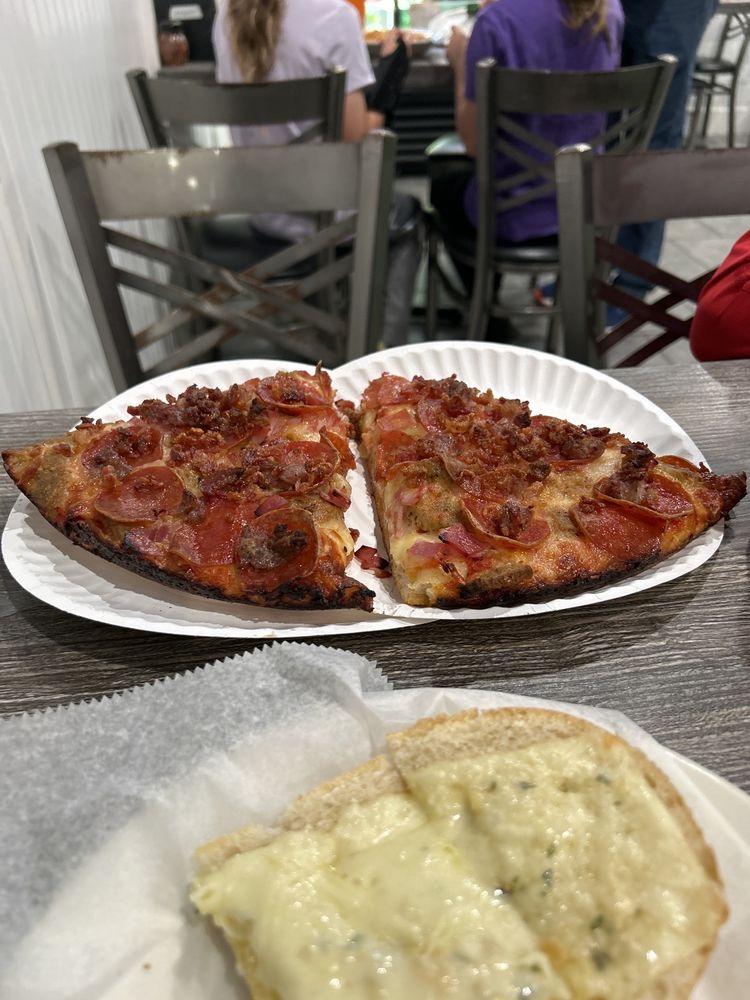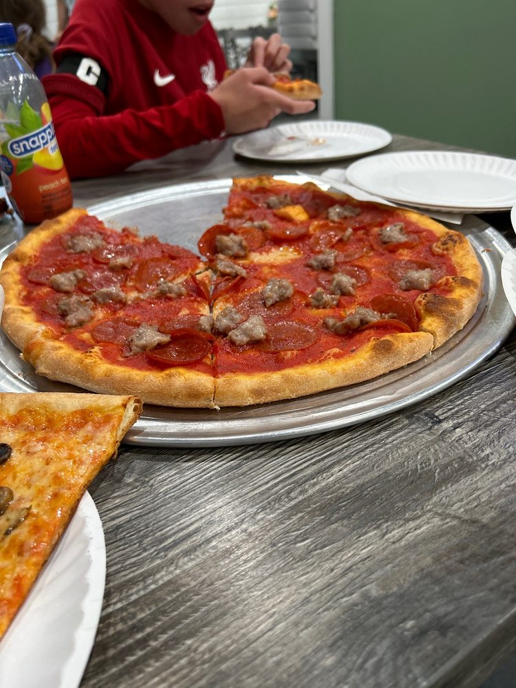 “ Thanks to Yelp, I found Conca D'oro as the pizza place closest to where the kids soccer game was being played. The staff was very patient and friendly being there were 6 of us there to eat in. They do a lot of deliveries and have mostly pick up. There are enough tables of 4 to host about 40 people. The folks there were very attentive while we were eating checking to be sure we had everything. I had 2 slices of mushroom pizza which were excellent. Nice thin crust and freshly sauteed mushrooms. My wife had the deep dish slice as well as the Margarita Pizza slice. Kids had spaghetti a-la-vodka. Enough pasta for 3 meals. It came with a salad as well as garlic bread with cheese. Most of that came home. Another kid ordered the calzone with mushrooms. The calzone was huge. Enough for 3 people as well, possibly 4. They also made one of the kids who has a dairy allergy--- pepperoni tomato pie. No cheese. Looks great, thin crust. Very pleased with the food and staff. ”